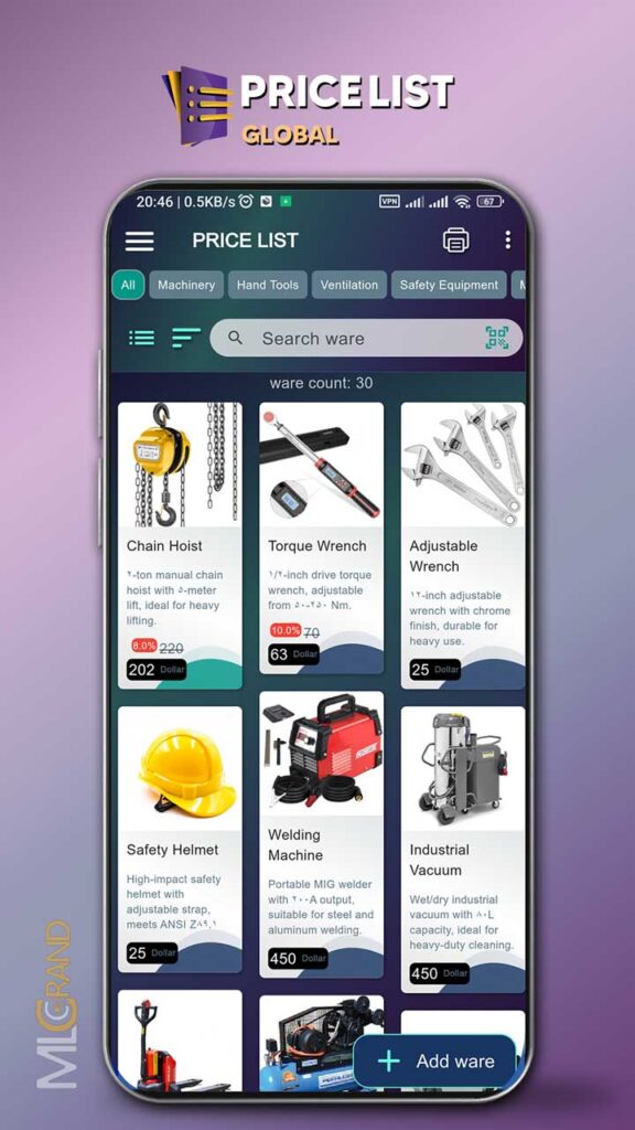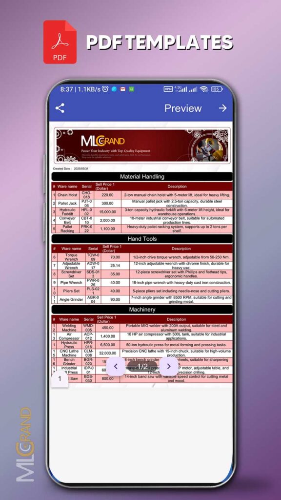 | Excel Integration | Export data to Excel; import product lists from Excel files. |